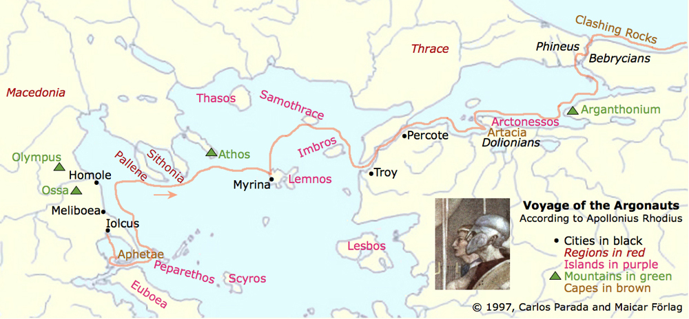 Itinerary according to the Librarian, Mythographer and Epic Poet Apollonius Rhodius (fl. 260 BC)