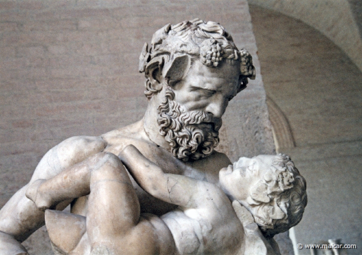 Silenus, protector of the child Dionysus 2. 0226: Silen / Dionysos. Vielleicht Kopie nach einer Statue des Lysipp (310-300 v. Chr.). Glyptothek, München.