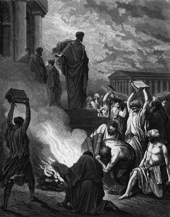 It was confidently affirmed, that if any impious hand should dare to violate the majesty of the god, the heavens and the earth would instantly return to their original chaos. An intrepid soldier, animated by zeal, and armed with a weighty battle-axe, ascended the ladder, and even the Christian multitude expected, with some anxiety, the event of the combats. He aimed a vigorous stroke against the cheek of Serapis, the cheek fell to the ground, the thunder was still silent, and both the heavens and the earth continued to preserve their accustomed order and tranquillity. The victorious soldier repeated his blows: the huge idol was overthrown, and broken in pieces: and the limbs of Serapis were ignominiously dragged through the streets of Alexandria. His mangled carcase was burnt in the Amphitheatre, amidst the shouts of the populace, and many persons attributed their conversion to this discovery of the impotence of their tutelar deity.
